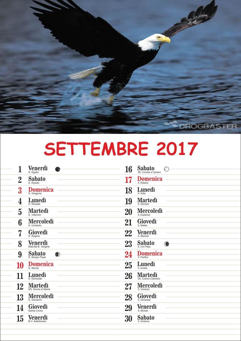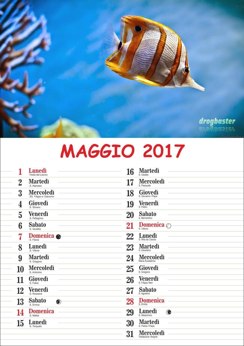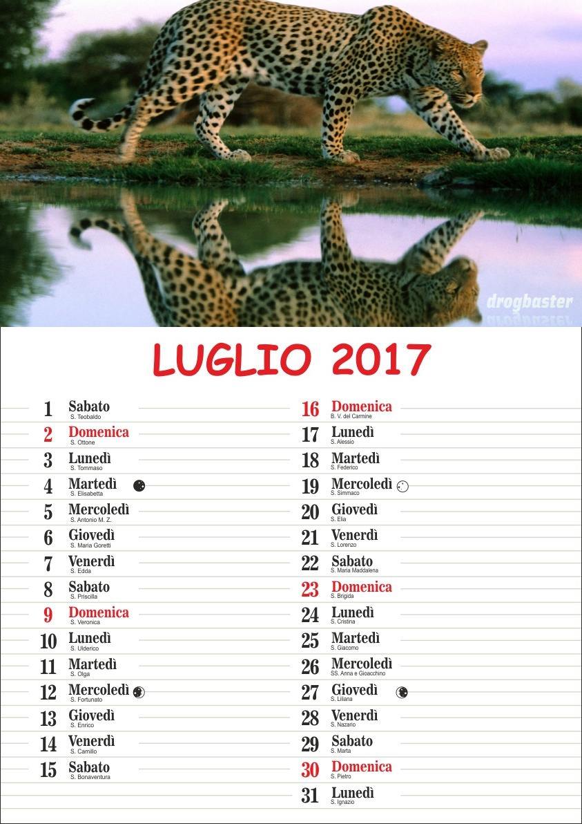 In ogni mese vengono visualizzate le informazioni sulla fase della Luna e i Santi del Giorno.
