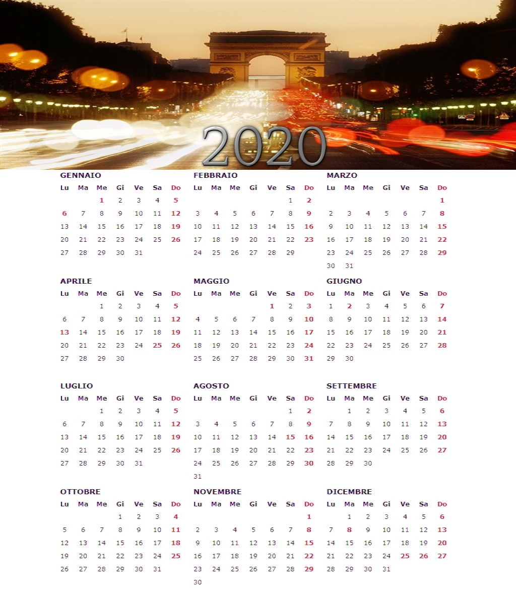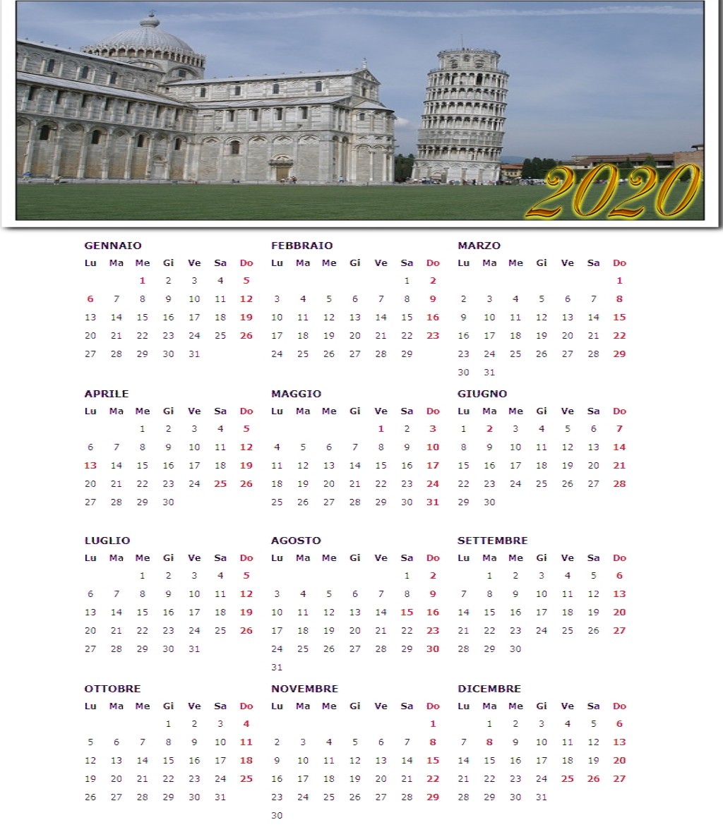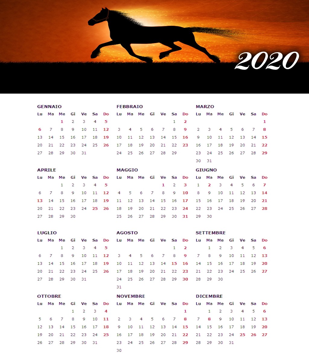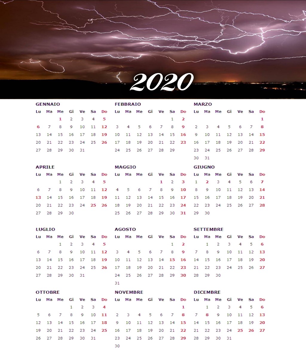 Diversi calendari dell’anno 2020, da scaricare e stampare gratis su qualunque tipo di stampante, nel formato pagina A4, in bianco e nero o a colori.