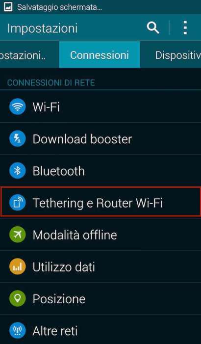 Per i dispositivi Android, la procedura è quasi del tutto simile, in alcuni casi, il termine è identificato come “Router Wi-fi“,  andare su Impostazioni/Altre/Tethering e Hotspot, scegliere il nome del dispositivo da connettere e la password.